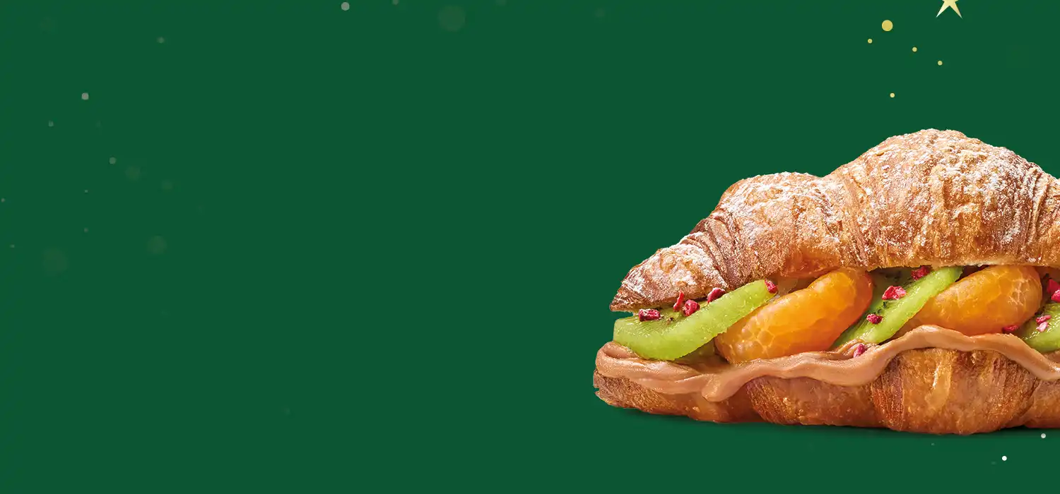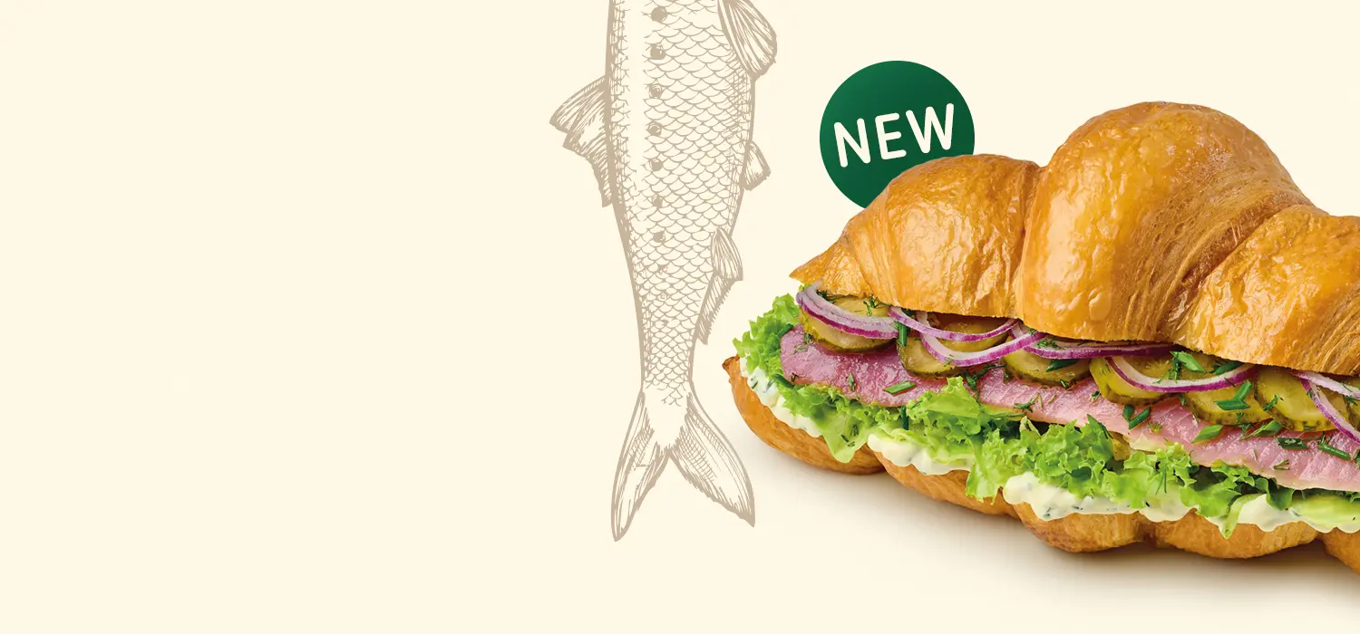 Croissant, Salami, Egg Patty, American Cheese, Cucumber, Tomato, Lollo Bionda Lettuce, Caesar Sauce