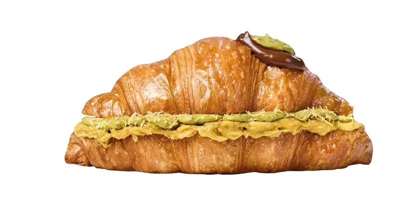 круасан масляний, фісташковий крем, карамельний сироп, фісташка