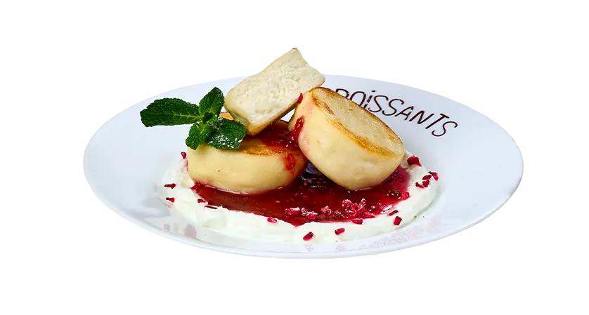 круасан, джем Малина, крем Йогуртовий, м'ята, цукрова пудра